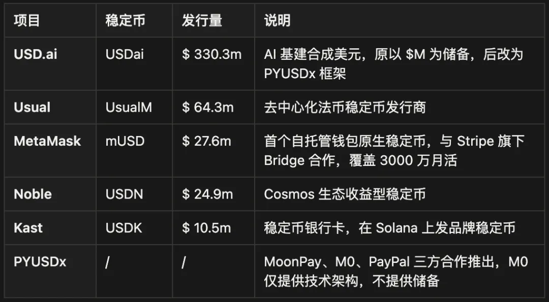 当底层基础设施搭好,最能说明问题的就是生态的接受度。看看谁在基于 M0 发自己的稳定币: