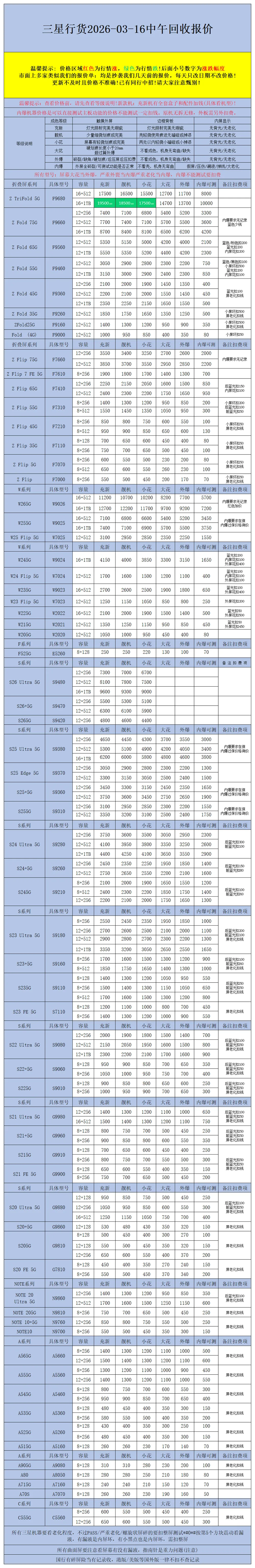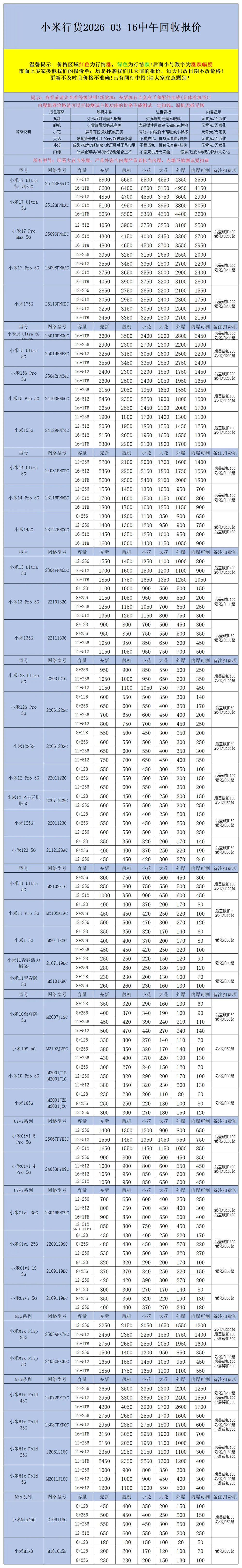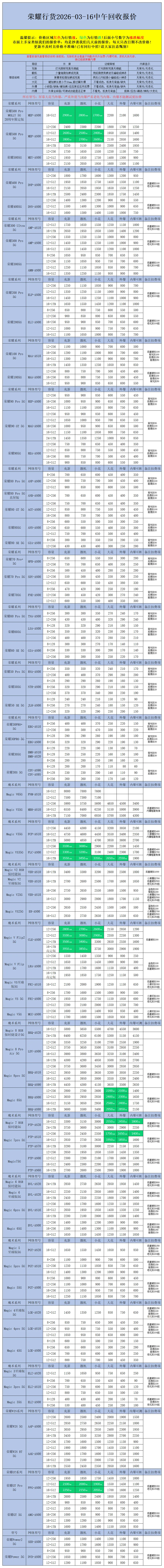 >【安卓】二手机回收报价2026-03-16