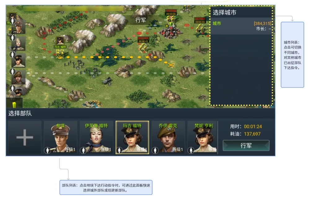 A:可以。 地图行军中的部队可以随时下达中止指令,随后即可下达新指令,实现真正的“自由移动”,不再受点对点连线的限制。