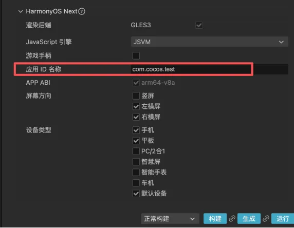 2.2 第二步:Cocos构建鸿蒙工程(一键操作,重点看配置)