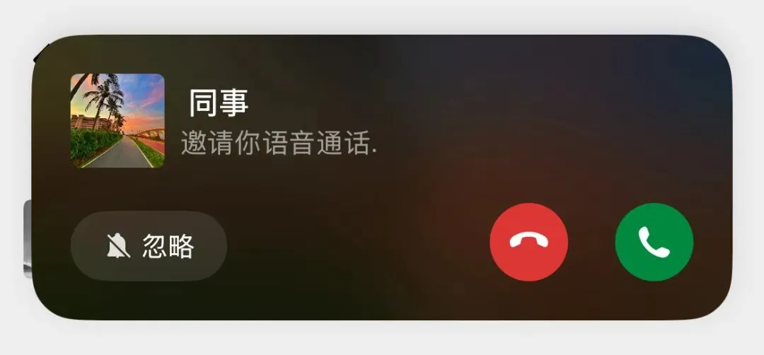iOS微信近期全面更新,微信语音/视频通话的弹窗界面,新增通话「忽略」功能!