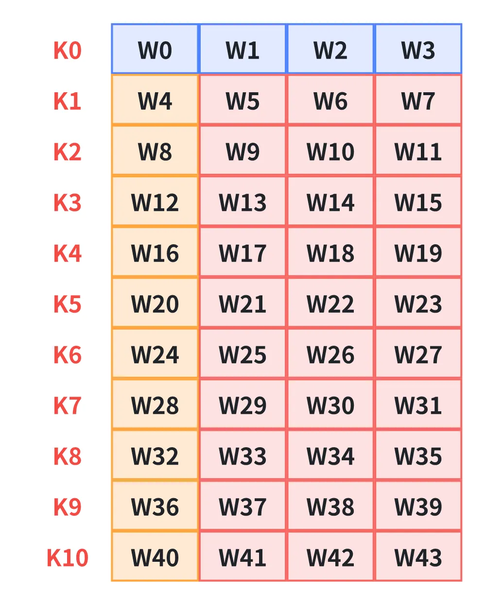 W数组结构主密钥被切分为 数组的前四个元素: