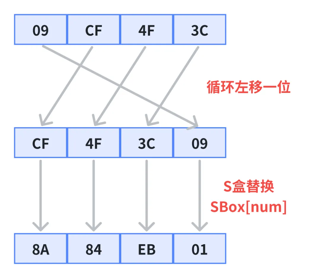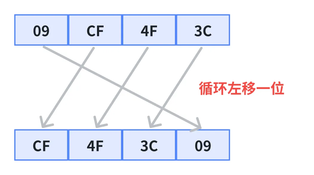 第一步:循环左移一字节(RotWord)