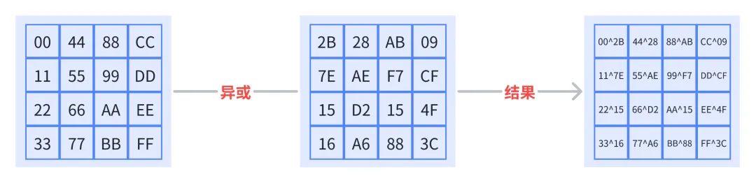 字节异或过程以 为例,完整计算如下: