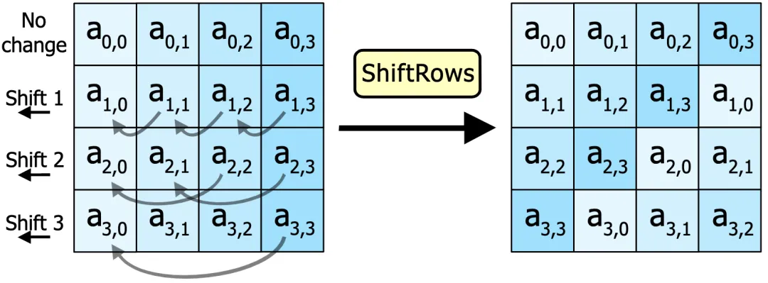 循环左移,目的是实现字节在行方向上的扩散: