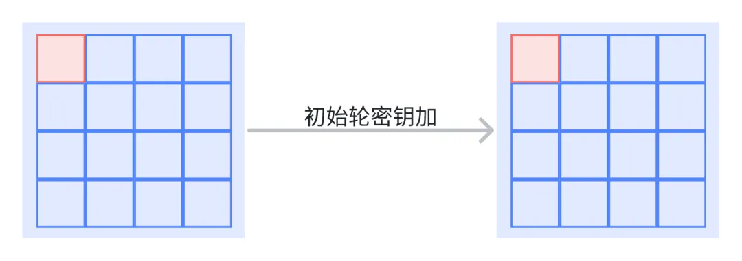 轮密钥加示意初始轮密钥加使用 (即主密钥本身):