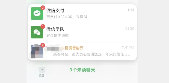 近日!微信团队针对iOS版微信 8.0.67+ 版本灰度测试一键查看未读信息功能,只需要双击左下角的微信小红点,你就能快速查看所有未读的消息,前提你已经被灰度上,不然无法体验这个功能。