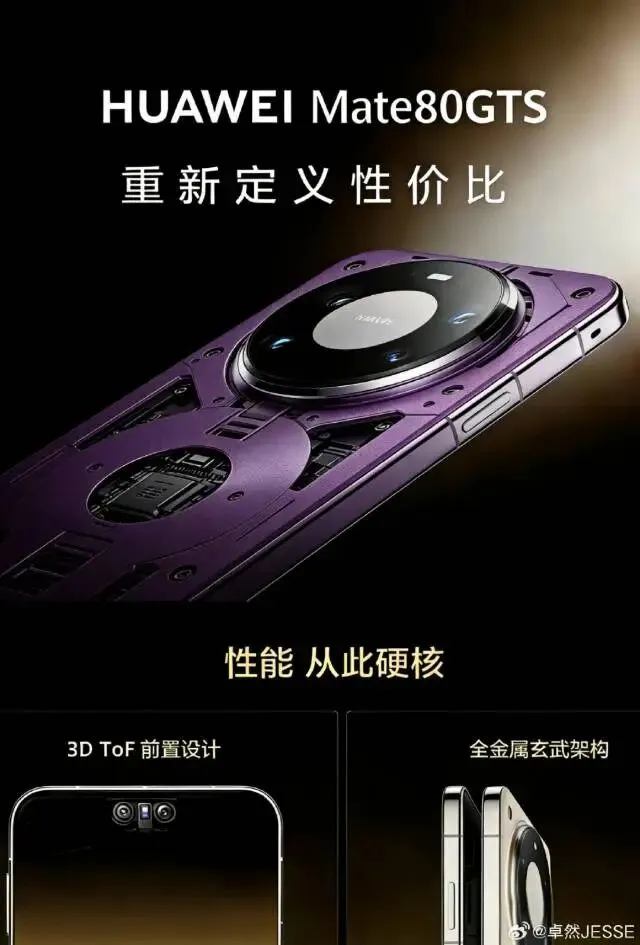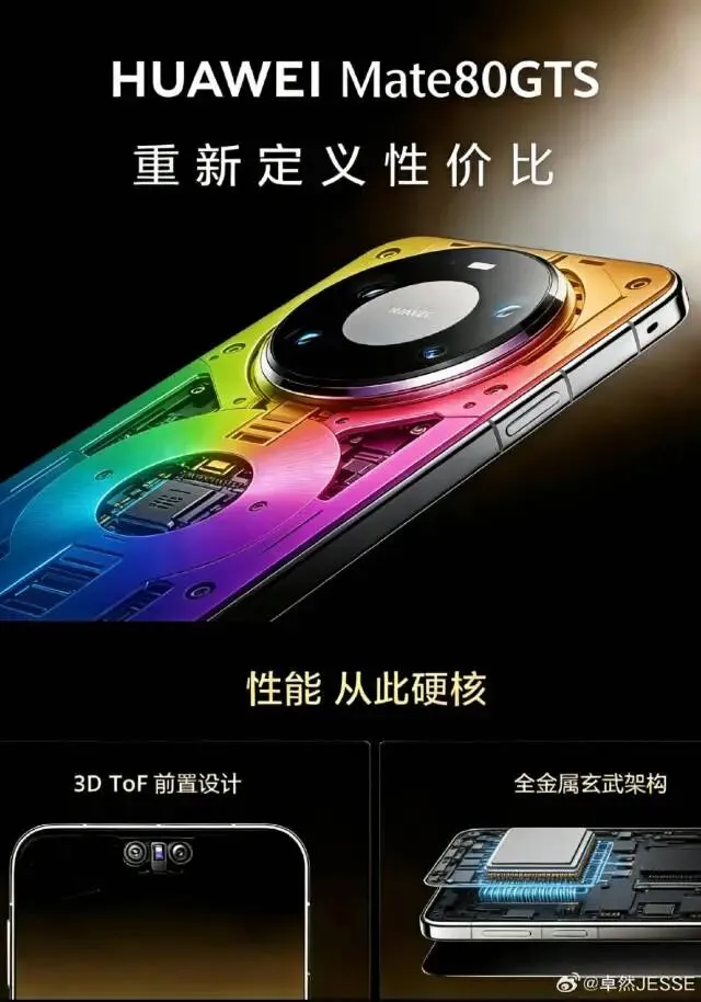 爆料称,华为 Mate80 GTS散热将采用自创微型磁悬浮涡轮风扇+微泵液冷+12000㎜²VC均热板组合式散热,且有IP68防水。