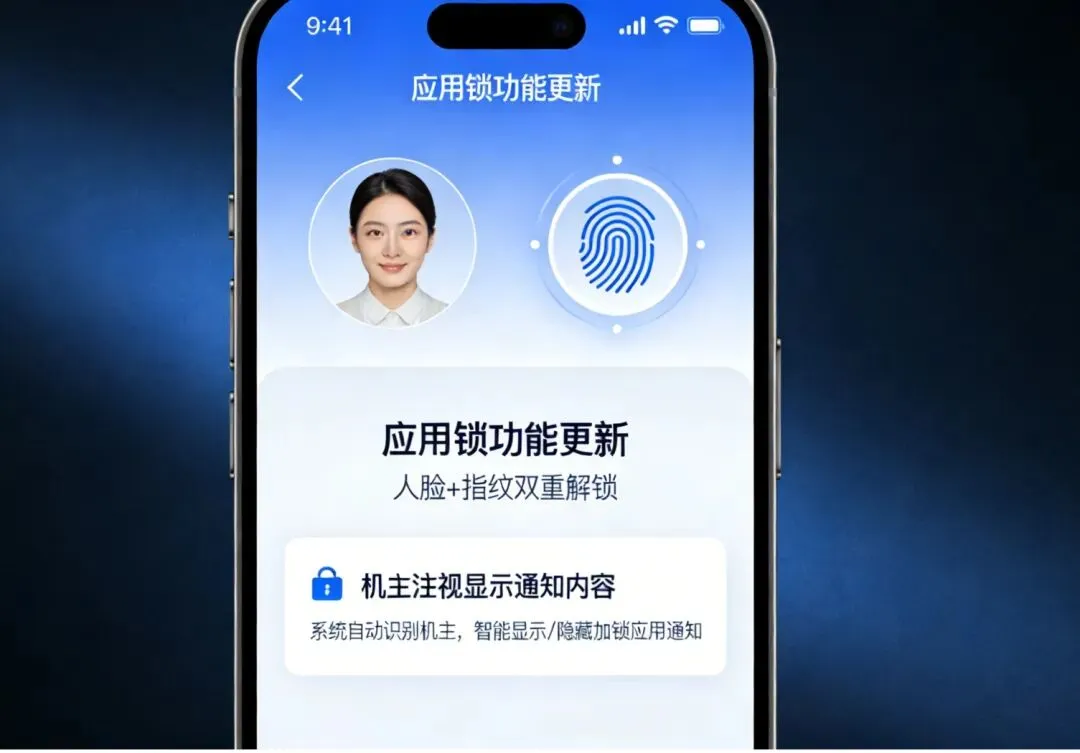 核心突破:应用锁现在支持人脸和指纹同时解锁-,更关键的是新增了 “机主注视显示通知内容” 功能-。系统能自动识别屏幕前是不是机主,智能判断显示或隐藏加锁应用的通知内容。