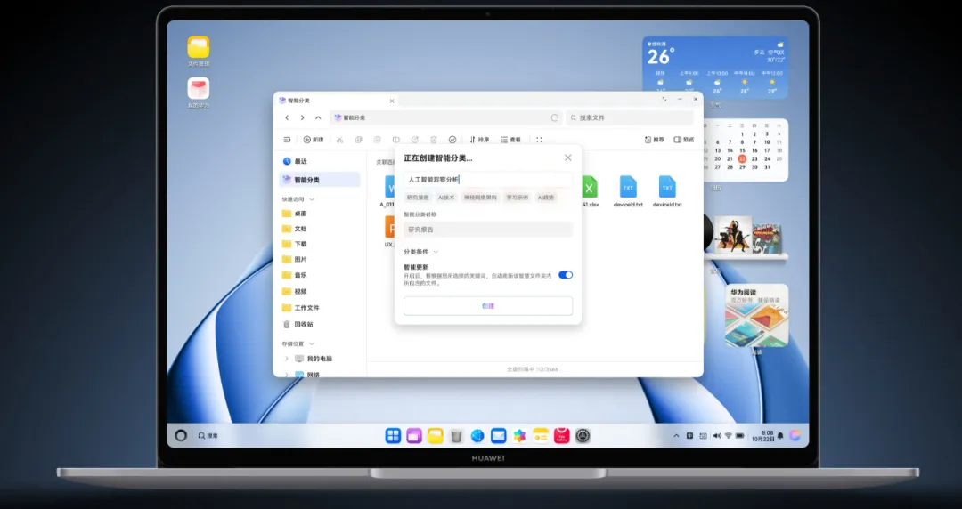 政企办公中,文件杂乱无章、查找困难是普遍痛点:一份合同、一份报告、一个表格,可能分散在电脑的各个文件夹,想要快速找到,往往需要翻阅多个目录,浪费大量宝贵时间。鸿蒙电脑的全新智慧文件管理能力,以系统级AI打破这一困局,通过“智能分类+智能推荐”双管齐下,让文件管理变得轻松高效。