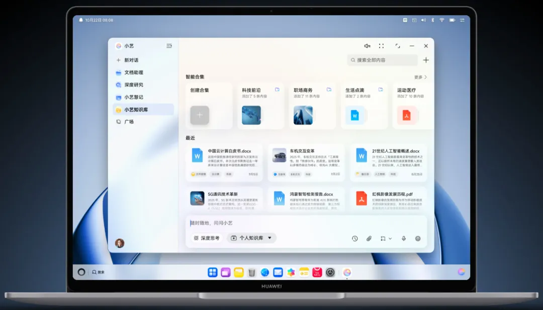 除了文件管理,政企职场人还经常面临“资料杂乱、难以复用”的问题:日常搜集的行业资讯、灵感笔记、竞品资料,分散在不同应用、不同文件中,想要快速调用、整合复用,难度极大。鸿蒙电脑的小艺知识库,以系统级AI能力,打造了一站式知识管理中心,让杂乱无章的资料秒变可用知识。