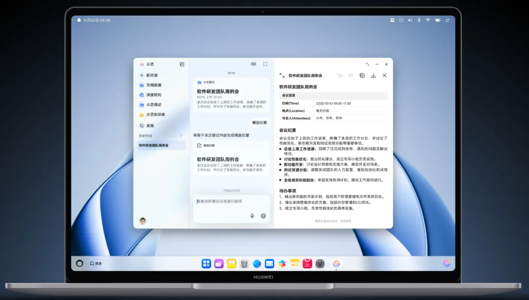 会议多、效率低,是政企办公的另一大痛点:线下会议要手写记录,容易遗漏重点;线上会议要分心记录,无法专注参与讨论;会后整理纪要,又要重复听录音、梳理内容,耗费大量时间。鸿蒙电脑的小艺慧记功能,以系统级AI赋能,化身用户专属的“会议秘书”,彻底破解低效会议困局。