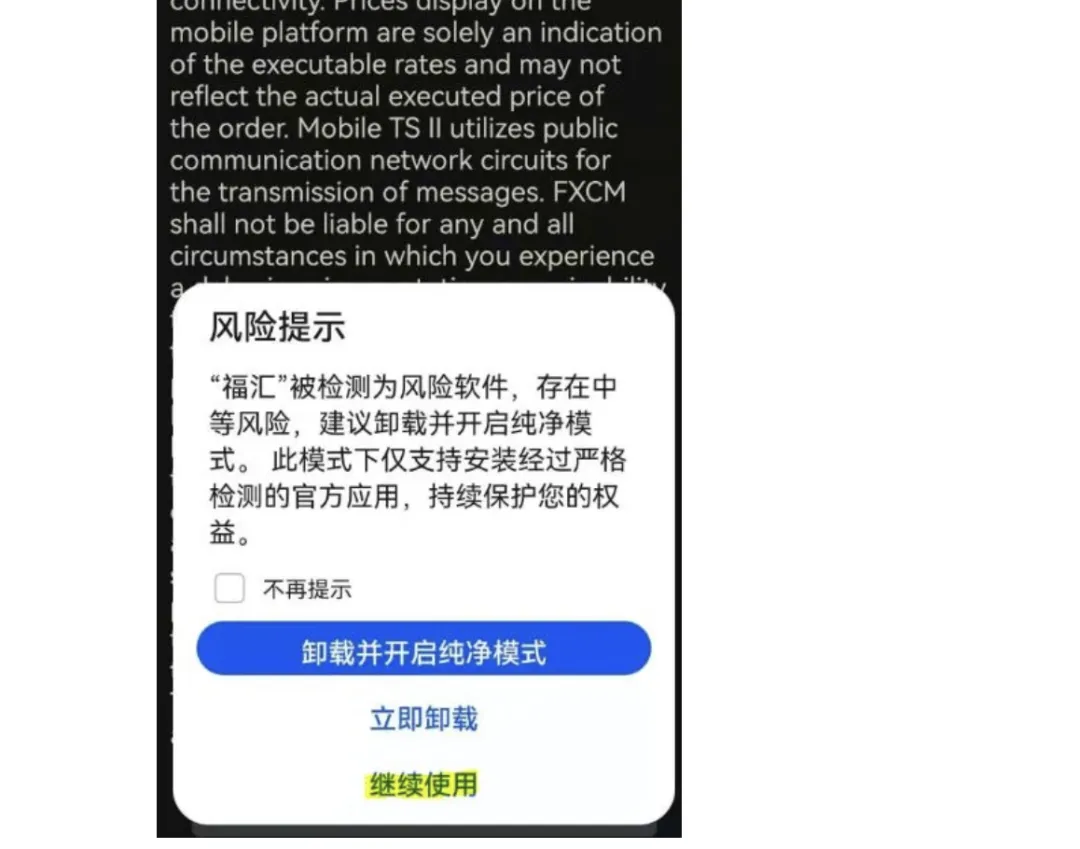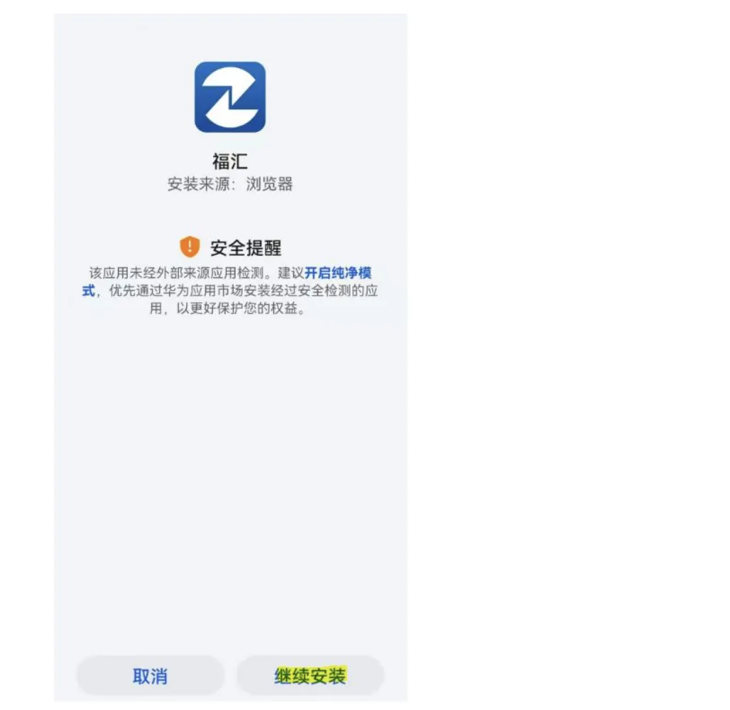 手机的设置已经完成,您可以点击安装下载好的福汇交易平台【TS2】或【MT4】。请注意,在安装的时候,您会看到安全提示信息,请您【继续安装】即可。