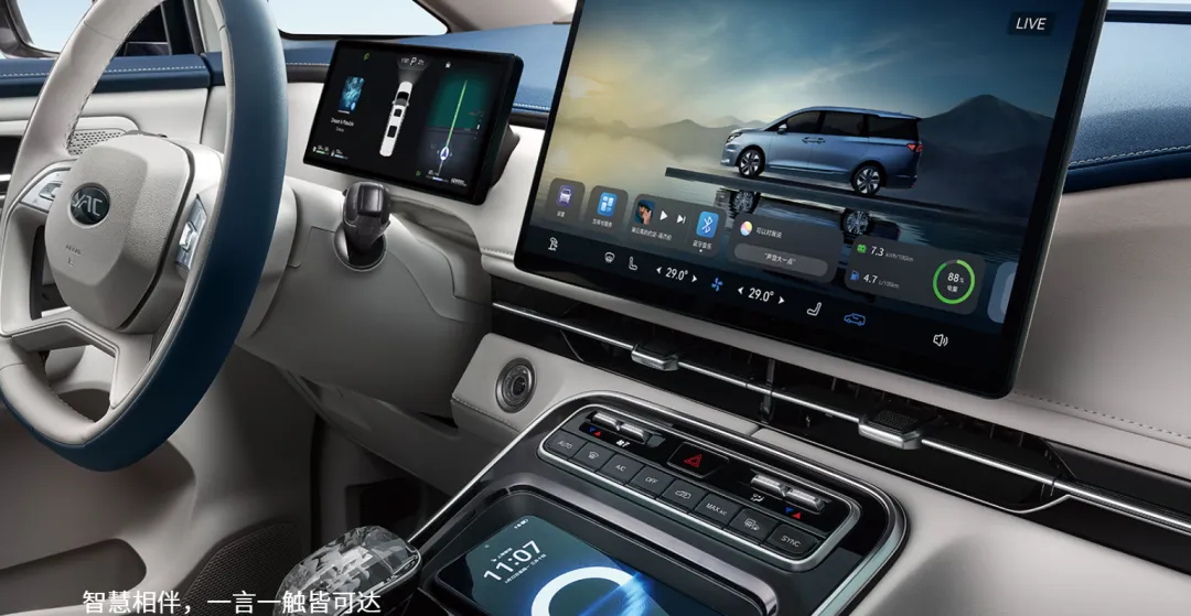 内饰设计也是当下比较网红的元素,除了拥有540度全景影像系统以外,还拥有L2级智能驾驶辅助系统。除此之外,双侧电动移化门,分段式的大天窗也是一应俱全。此外,还匹配了15.6英寸的中控屏,内置的是鸿蒙OS智能车机系统,这一点你是不是同样没想到呢?但是如果想要买到鸿蒙版本,是需要顶配车型的,低中配置是江淮自己的智聆车载系统。