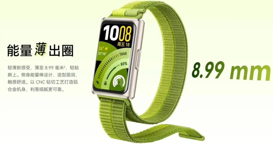 智能手环好不好用,第一观感就是佩戴手感,华为手环11系列这次主打轻薄设计,完全解决了传统手环厚重硌手的问题。标准版最薄处仅有8.99mm,整机重量只有16g左右,戴在手腕上几乎感觉不到存在感。无论是是睡觉、运动等场景佩戴,都不会有累赘感,长时间佩戴也不会勒出印子,对佩戴舒适度敏感的朋友来说,这点真的很加分。