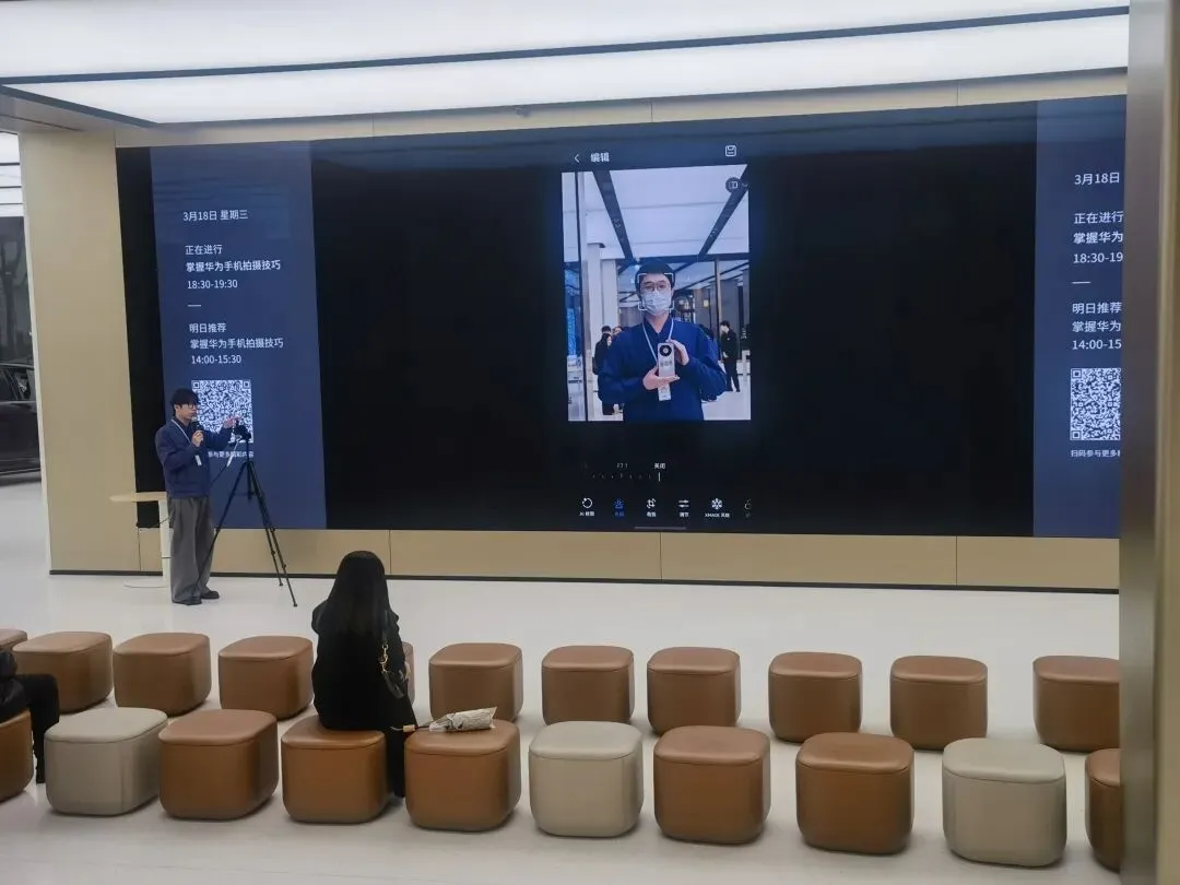 我确定这是我心仪的电脑,一件大事敲定,我轻松了不少,接下来想要探索鸿蒙的其它产品,我上楼体验了音响,智能家居,随后大厅屏幕预告接下来的课程,一节是华为电脑办公软件的使用,一节是华为手机摄影的功能使用,两节课的内容都是我感兴趣的,于是我坐下准备学习新产品的功能。