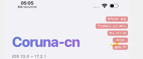 在3月17日上午时段,johnny 作者在 X 推特发文称,提供几款兼容 Coruna 越狱的插件,其中!StatBar 这款插件被其他开发者进行二改,添加自定义功能,可对温度、电量、内存、网速、天气版块自定义位置。