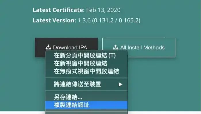 要获取IPA Link 方式,可以直接通过网页提供的IPA 下载点,