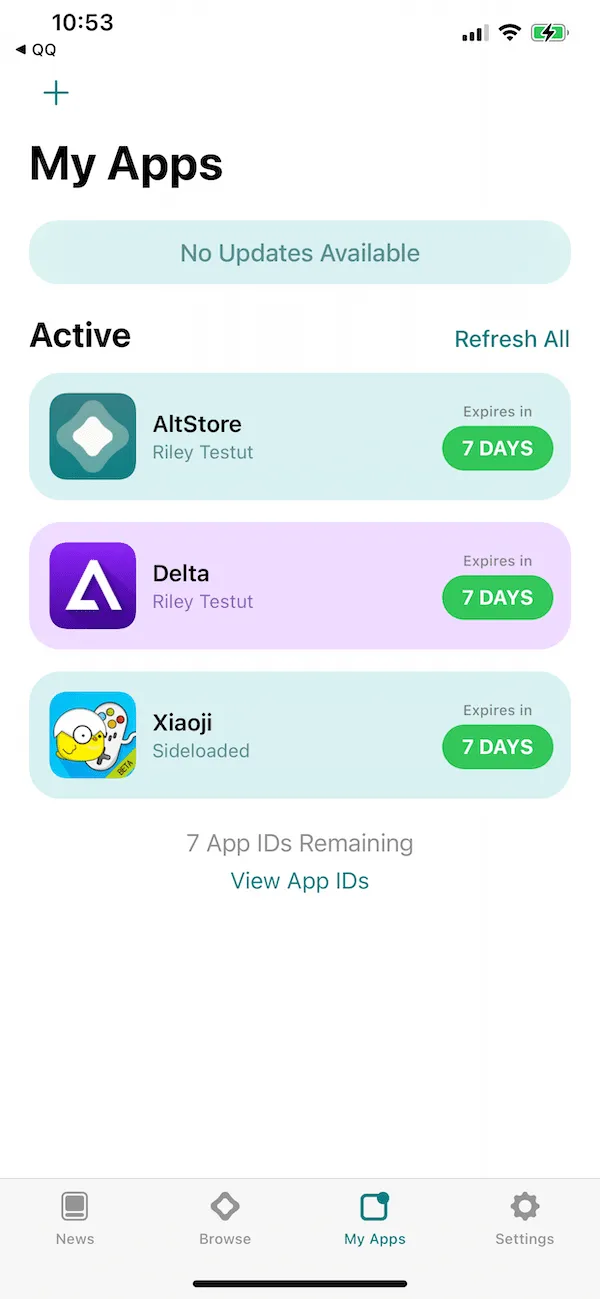 3. 通过AltStore 签名安装的APP 都只有七天期限,