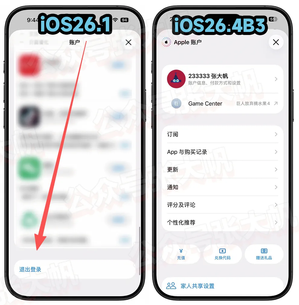 App Store 用户界面改版,取消了退出苹果账户的选项(