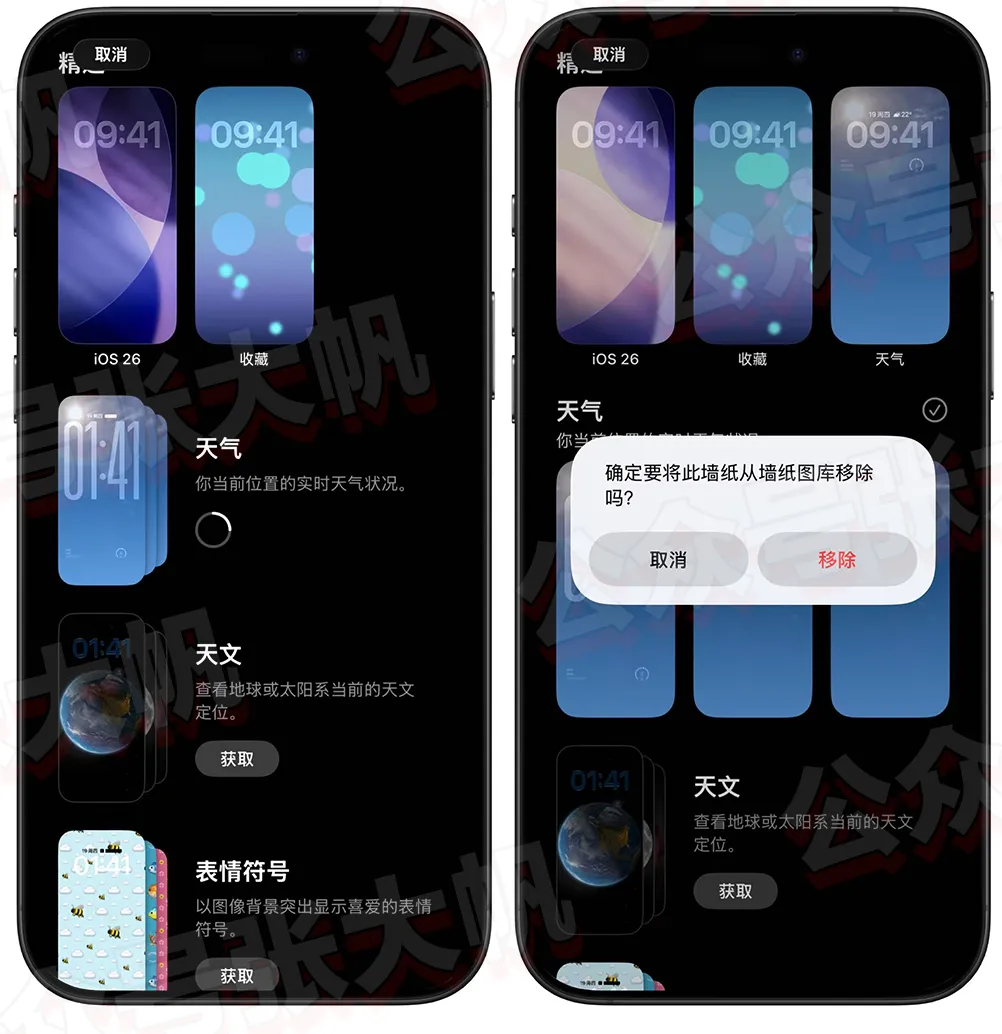 现在可以选装系统壁纸了,和 Mac 操作一样,可以获取下载壁纸,下载后觉得不好用也可以删除它,节省空间!