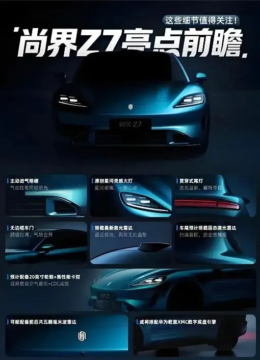 安全更全面,Z7T车身是高强度钢铝混合+一体化压铸,扭转刚度达超跑级,碰撞时能更好保护乘员。被动安全标配9气囊,包括主副驾、侧气帘、膝部气囊,全方位防护。主动安全由华为乾昆ADS 4.0兜底,27个感知硬件含双激光雷达、5颗4D毫米波雷达、高清摄像头,能精准识别行人、非机动车、障碍物。主动刹车、车道保持、盲区监测、疲劳提醒全标配,智驾系统能提前预警、主动避让,大幅降低事故概率。电池包经过挤压、火烧、涉水测试,底盘有防护板,用车更安心。