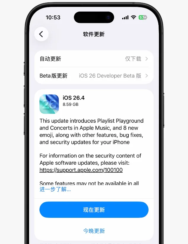 今日凌晨,苹果为开发者预览版用户推送了iOS 26.4 RC版的更新,已经注册了苹果开发者计划的用户可直接打开设置--通用--软件更新-- Beta版更新中在线OTA升级至最新的iOS 26.4 RC版。