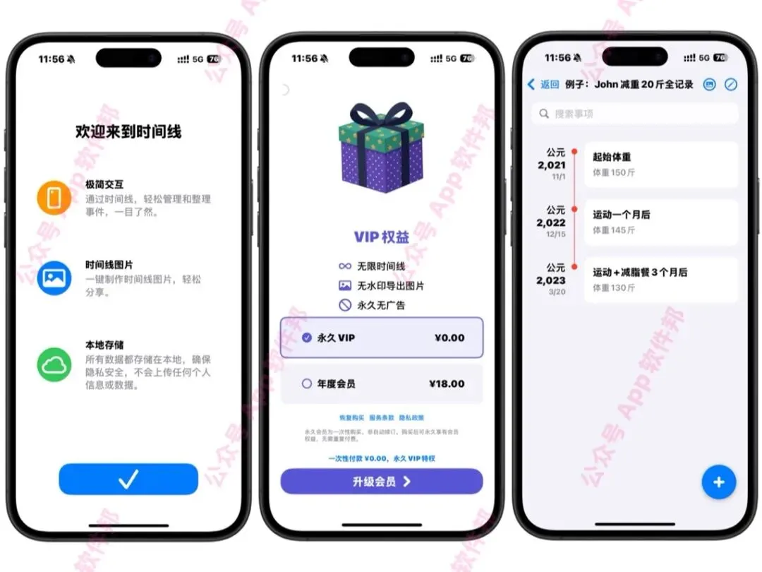今天分享的是一款叫「时间线」的神器,简直是我这种爱瞎记东西的人的救星。之前想梳理读书笔记、健身打卡,总乱成一团,现在用它建了好几条时间线,事件拖一拖、改一改就规整了,还能换颜色、生成美美的长图分享给朋友,超有成就感。历史迷记朝代、打工人控进度、写小说的捋情节都特别顺手。最关键是极简设计,上手一点不费脑。目前这款应用高级完整版正在限免中,手慢无。