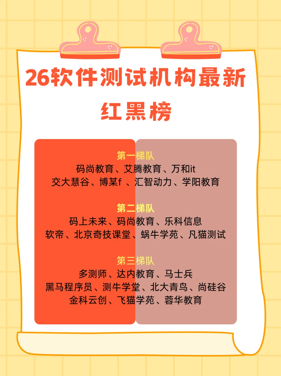 26软件测试机构红黑榜