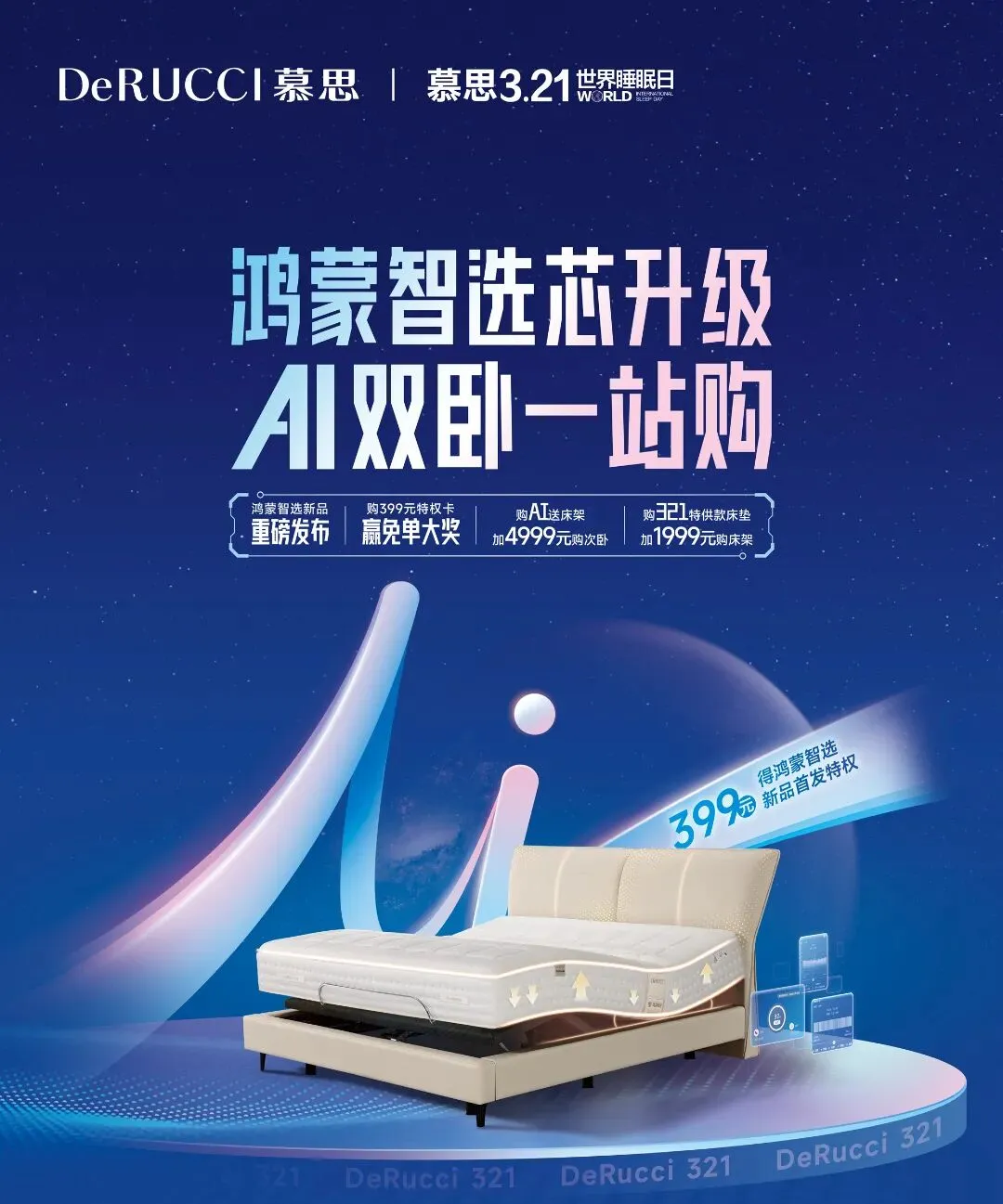 本次春季睡眠焕新季,慕思带来三大核心亮点:鸿蒙智选新品全新升级,搭载新一代智能感应芯,能够精准捕捉人体曲线变化,动态调节支撑力度,有效弥补传统床垫贴合度不足、支撑不均的问题,带来更贴合身体的舒适体验;AI双卧一站式配齐服务,轻松搞定主卧与次卧全套睡眠配置,免去反复挑选、搭配对比的繁琐,让全家睡眠升级更省心、更划算;活动期间更有免单大奖、4999元立减、1999元抵扣券等多重惊喜福利,让高端智能睡眠好物轻松走进日常家庭。