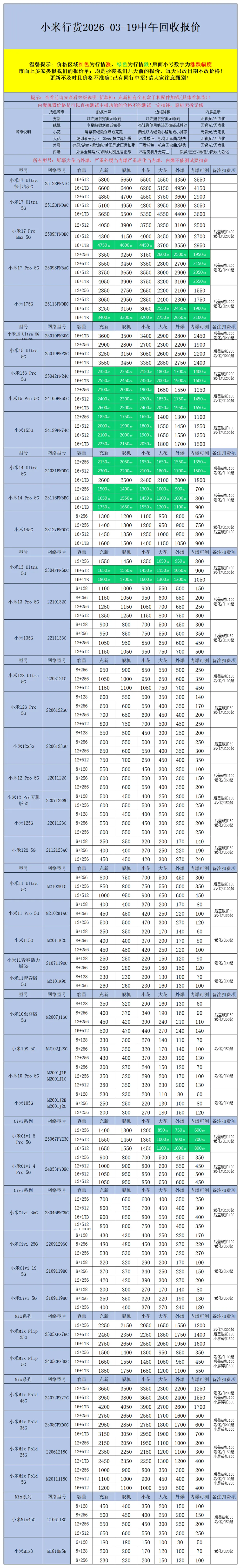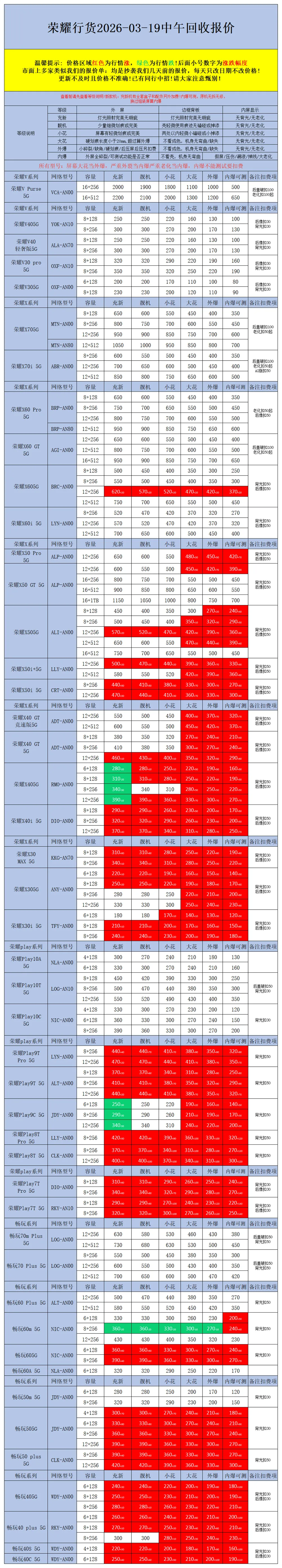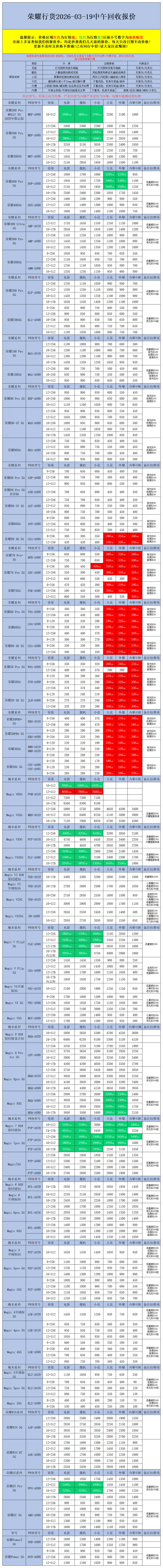 >【安卓】二手机回收报价2026-03-19