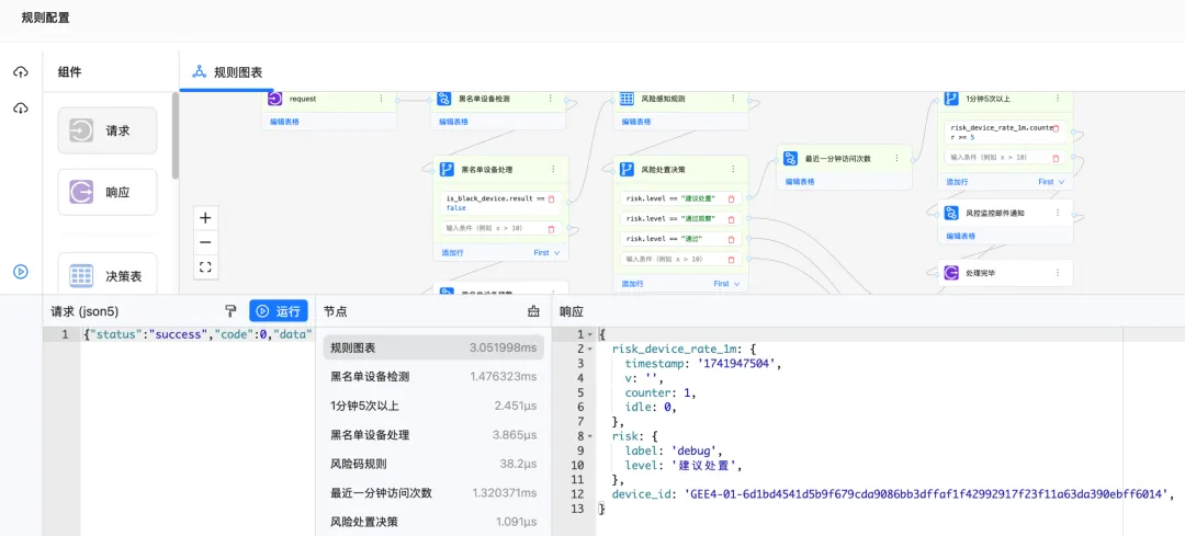 在极验风控决策平台上可以进行规则可视化编排,对异常风险请求进行实时决策的管理系统。