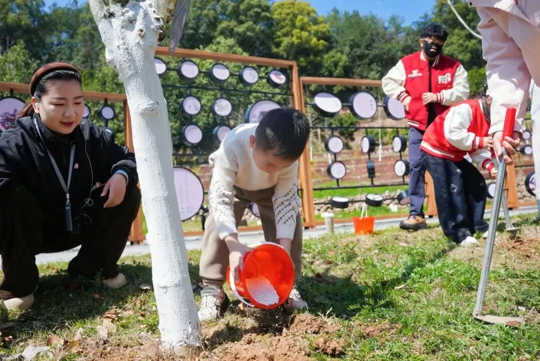 为园内植物悉心浇水、施肥。嫩芽在呵护中舒展,水珠轻落叶片,生命成长的美好在此刻尽显。温馨互动间,拉近了彼此的距离。