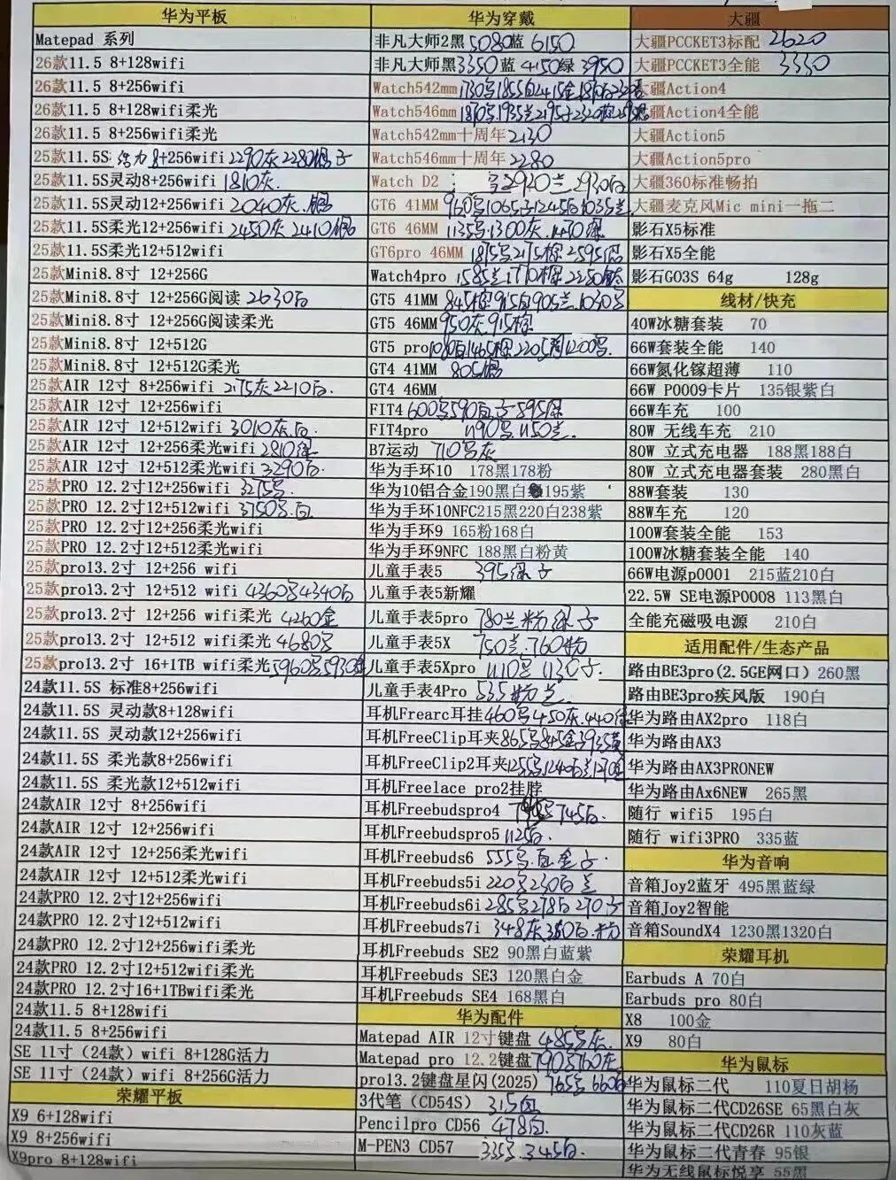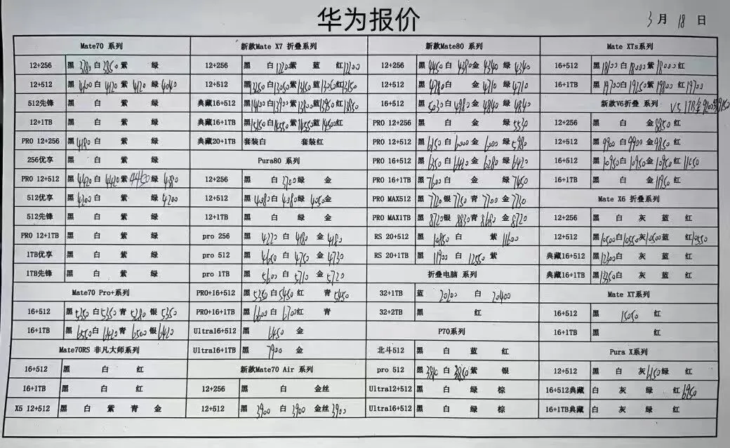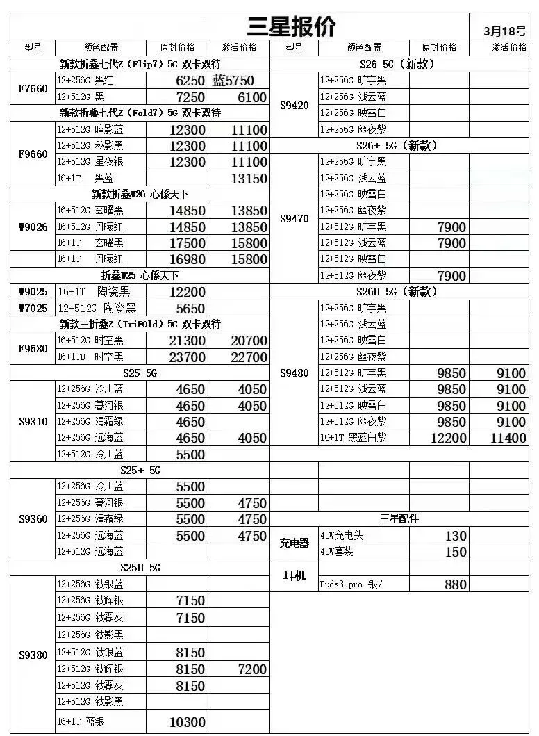 华为平板手表和三星报价不常更新
