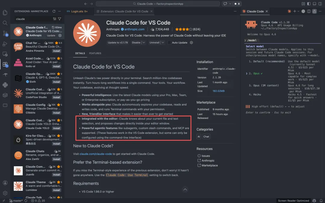 1. Claude Code 插件 —— 比直接在单独的命令行里面好用,可以自动识别到你当前所在文件位置和选中的代码,作为对话上下文