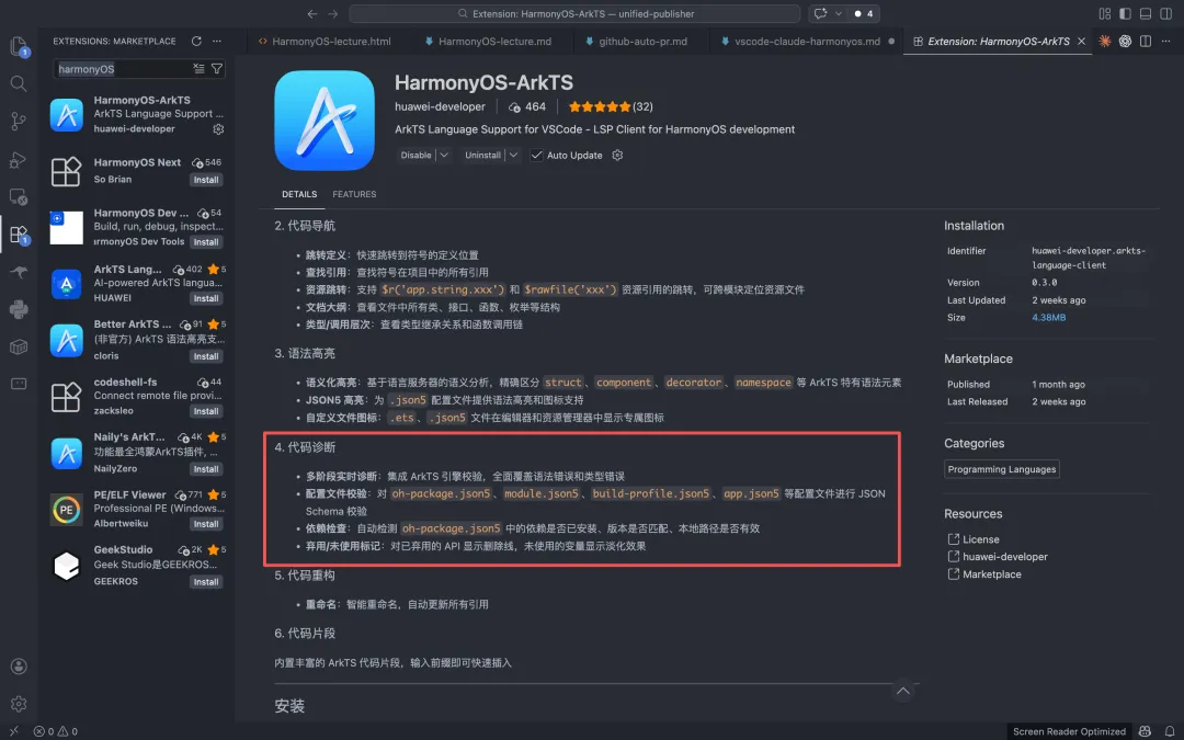 2. HarmonyOS-ArkTS 插件 —— 提供 ArkTS 语言服务(代码高亮、跳转定义、语法诊断)
