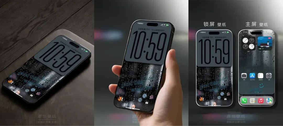 >城市光晕雨滴 ios26简约小众手机壁纸