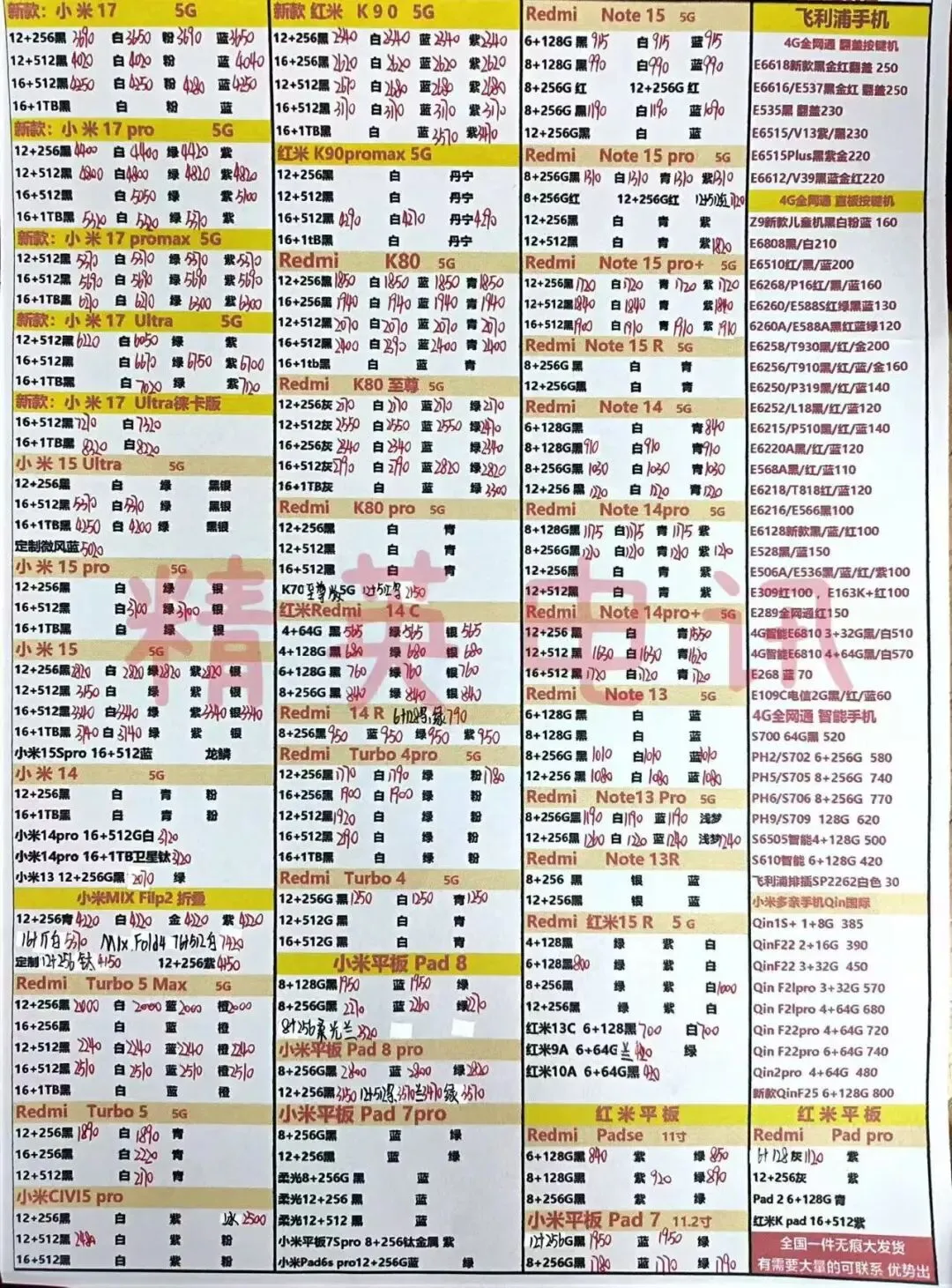 以下报价都是深圳华强北手机批发市场当天的最新批发价格(不含税),报价是我们的批发底价,零售拿货价格需加20~100元不等,京东包邮(量大价格可谈)