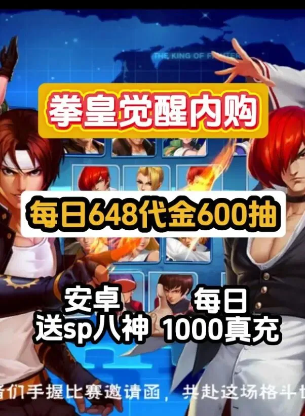安卓拳皇拳魂觉醒内购/每日648代金/送月卡/600连抽/5星八神/百万充值卡/超级SP格斗家