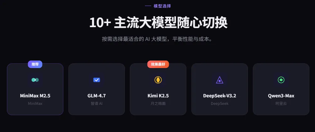 更贴心的是,ApkClaw实现10+款主流大模型随便切,想追求效果就选Kimi K2.5,想平衡性能和成本就用推荐的MiniMax M2.5,自己说了算,按需选择就完事了。