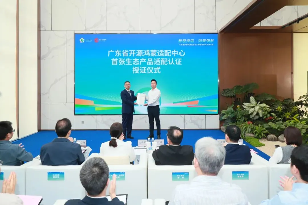 △广东省开源鸿蒙适配中心首张生态产品适配认证证书授证 李剑锋/摄