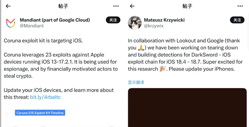 你可能对 DarkSword / Coruna 网页漏洞很陌生,但我告诉你这两个漏洞利用包,可以获取你设备权限,也能读取到你设备系统中某个文件,针对相册或者通讯录这些肯定是没问题的,所以说它危险系数高不为过。