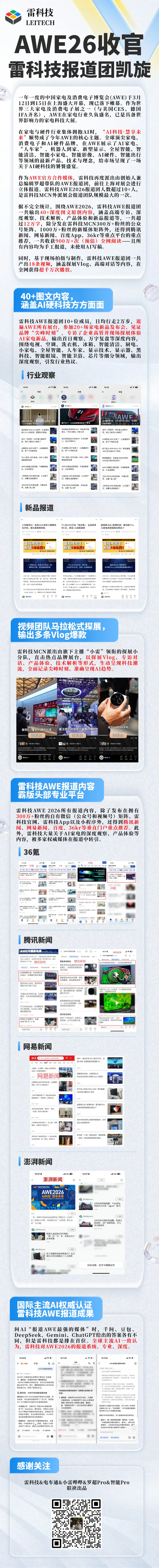 在雷科技MCN总编辑罗超、核心主播“阿雷”领衔下,雷科技AWE报道团(10+人)奔赴上海展开现场报道,现已凯旋。欢迎在雷科技全平台获取相关内容。