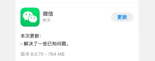 在03月21日下午时段,微信团队针对iOS版微信推出 8.0.70 版本,该版本为正式版,官方并未告知更新什么,我更新后也没有发现新变化。