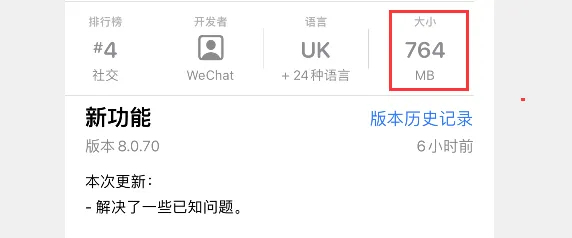 iOS版微信8.0.70正式版已发布,官方并未告知更新什么。