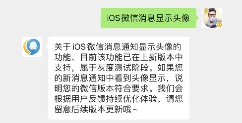 微信客服有对消息显示头像功能回应,该功能处于灰度测试阶段,部分用户可能尚未生效,请耐心等待上线。