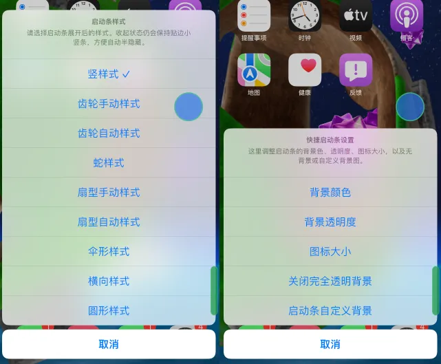 悬浮球支持隐藏或半隐藏