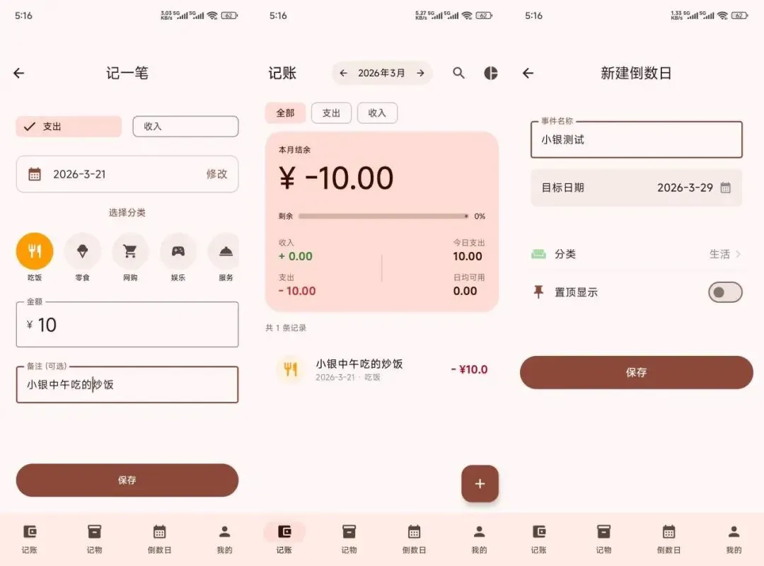 软件介绍:是安卓端超实用的三合一生活工具,纯本地运行不联网、不申请多余权限,安全又省心。主打记账、记物、倒数日三大核心功能:快速记录收支、管理物品位置与状态、提醒生日/纪念日/还款日,支持数据导出备份,界面极简、操作顺手,学生党、上班族必备,日常管理一步到位。(该软件为单机软件,没有联网权限)