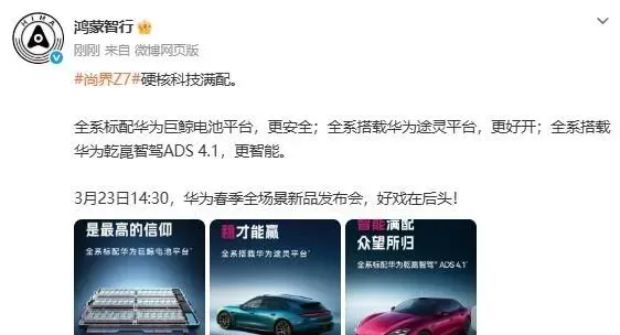 以前买新能源车,最让人纠结的莫过于看配置表。想省点预算选个入门款,结果发现厂家把最核心的智能驾驶、高级底盘甚至电池安全保护全都给阉割了。就在今天(3月20日),鸿蒙智行正式揭开了全新车型尚界Z7的面纱,这台车最硬核的地方不在于参数有多高,而在于它彻底打破了“高低配”的潜规则。官方直接摊牌:华为最尖端的三大技术,在这台车上全是标准配置,没有所谓的入门版“缩水”。