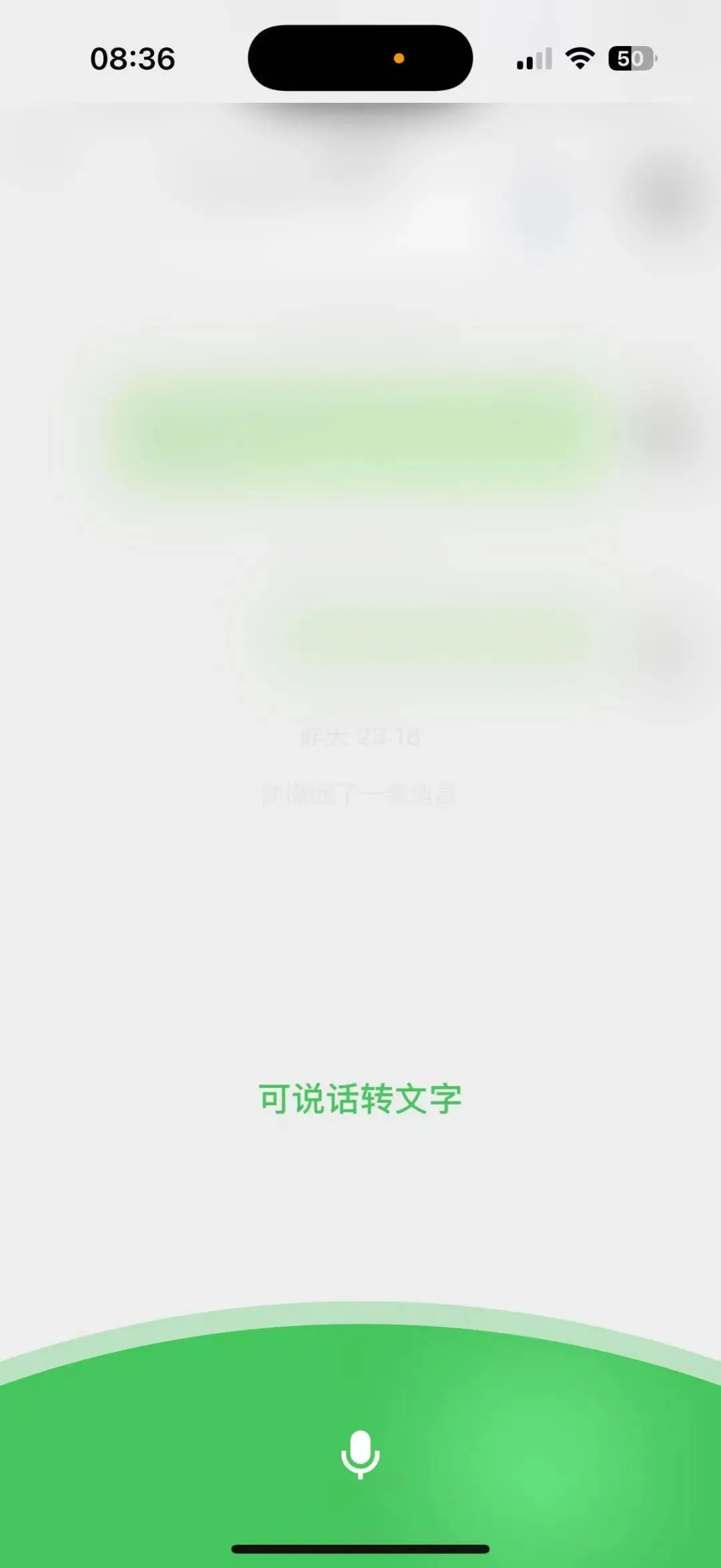 在聊天界面,长按输入框内的「话筒」按钮,会显示一个专门的语音转文字界面。